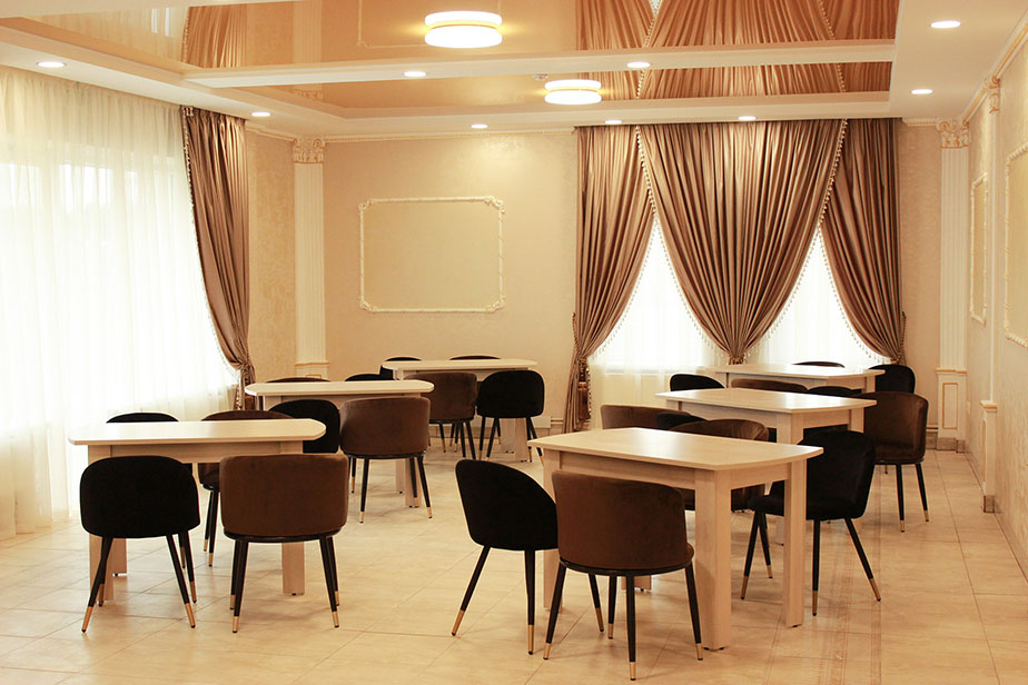 К Вашим услугам изысканные блюда авторской кухни, обслуживание, музыкальное сопровождение, аниматор, индивидуальное оформление и украшение залов (по предварительной заявке). Возможна сдача в аренду банкетных залов.