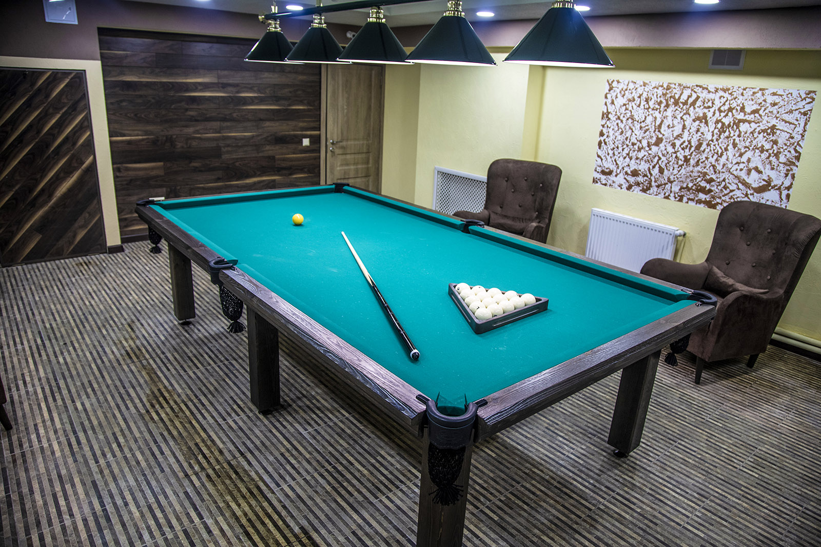 Разнообразить свой отдых Вы можете в бильярдной Marabu Village. Сыграйте с друзьями или семьей в русский бильярд. Этот благородный вид спорта поможет расслабиться и испытать положительные эмоции. Кроме того, вы можете расположиться в мягком кресле, дожидаясь своего хода, и посмотреть телевизор. Неспешная игра в бильярд идеально впишется в атмосферу ваших выходных вдали от городской суеты.