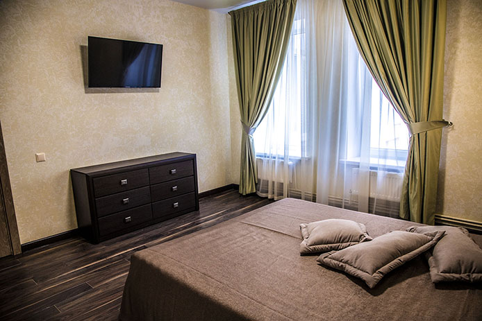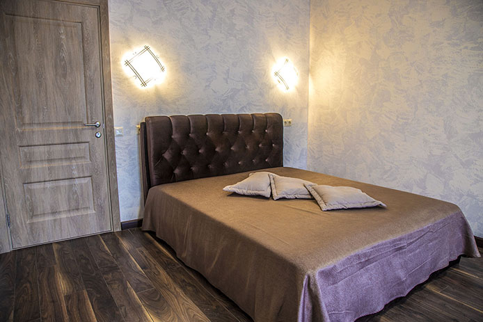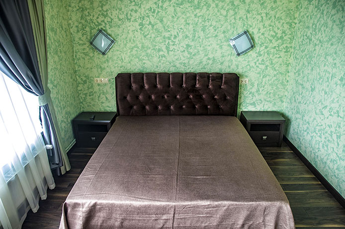 Если вы хотите уединения, предлагаем на выбор отдельные номера: двухместные и семейные. В двухместных номерах расположены просторные двуспальные кровати, вся необходимая мебель, отдельный санузел с душевой кабиной. В семейных номерах располагаются две спальные комнаты, две уборные, гостиная и кухня. А приятным дополнением станет барная стойка и собственный балкон!